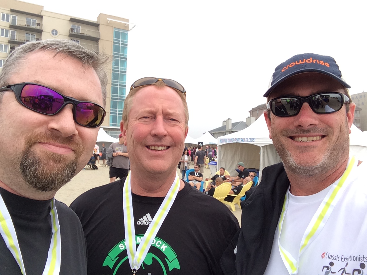 The event is called Hood to Coast, aka …The Mother of All Relays. It’s an event in which 12 people with two support drivers and two vans run 197 miles from about 6000 feet on Mt. Hood to the beautiful Oregon Coast, Seaside, Oregon to be specific.