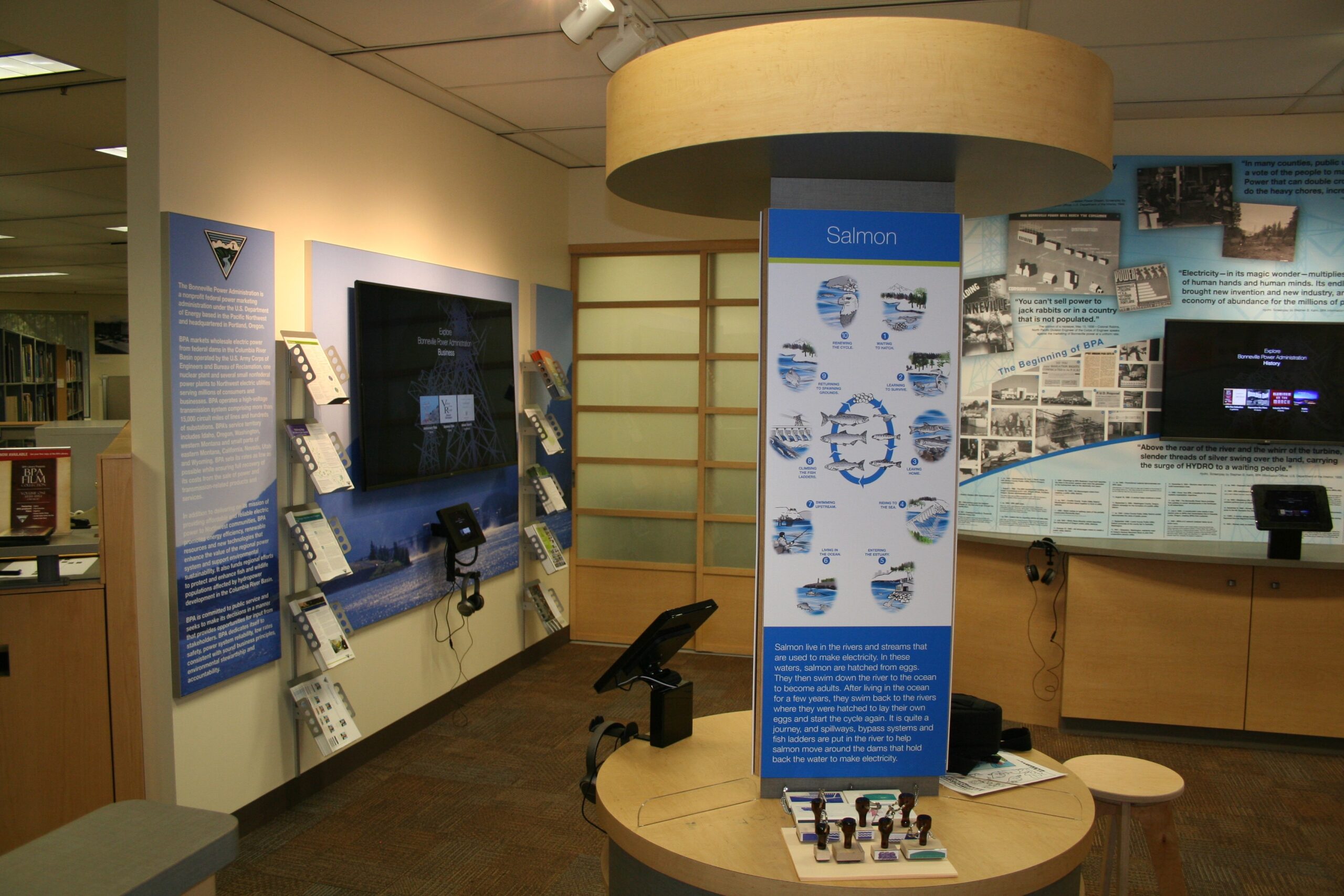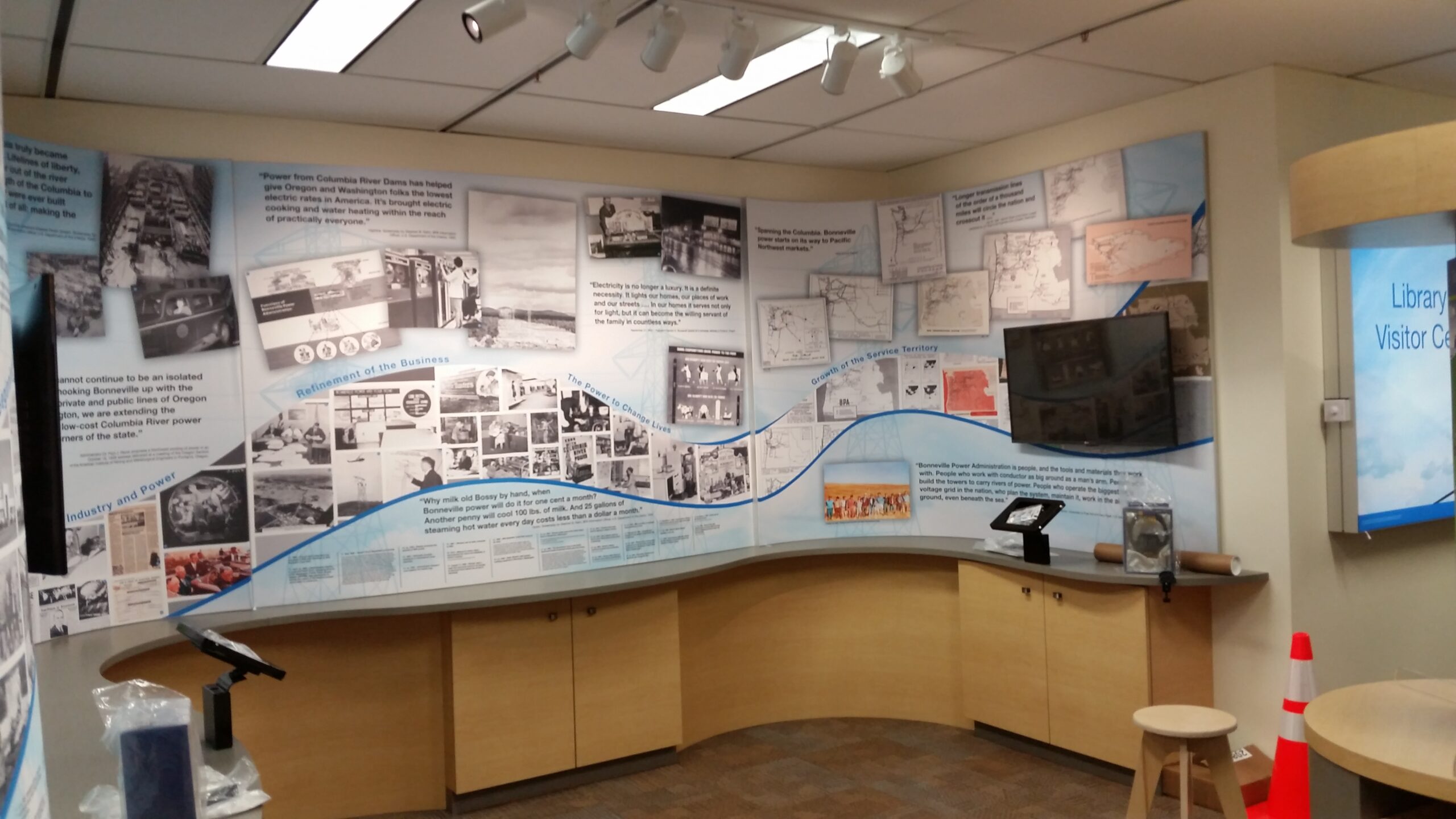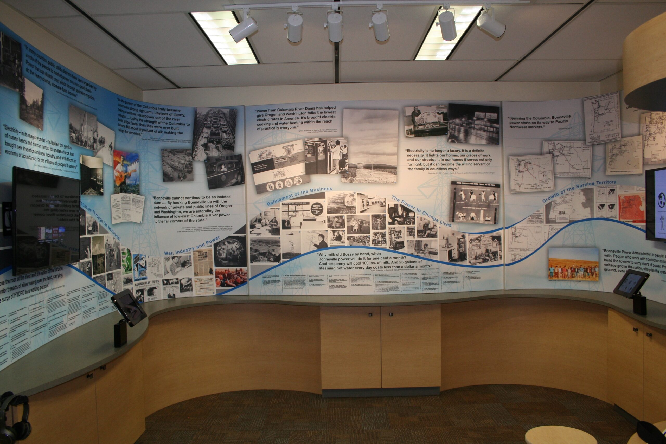 Our world is branding exhibits via structure and graphics, but an interpretive center combines structure, brand, and history. That’s no small task since the BPA’s history is deeply tied the economic and infrastructure growth of Oregon and Washington over the past 80 years.