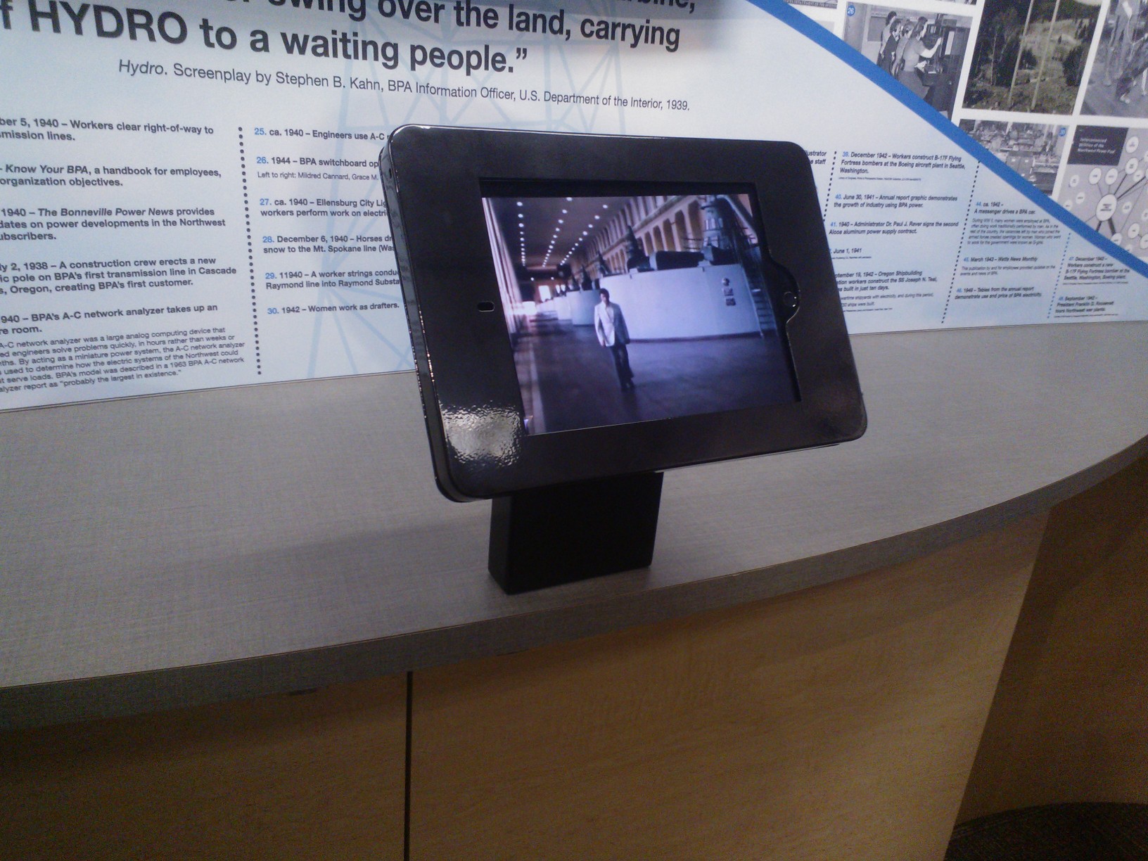 Tony then took the same images plus two historical DVDs with videos and created an interactive app for each section: the History Walls, the Geography Wall, and the Business Wall. And again did “an amazing job bringing all that context to life” in the words of one of the Contracting Officers from the BPA.