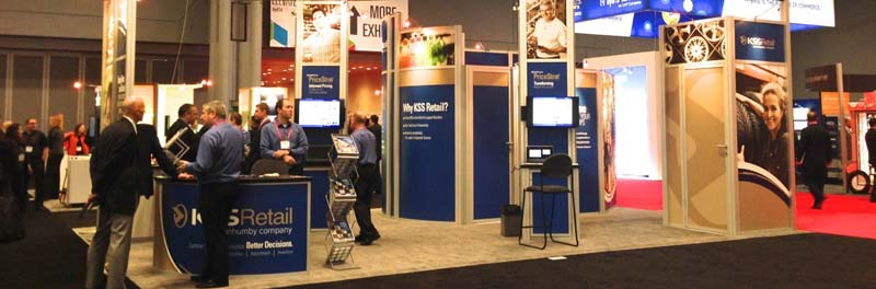 7. The Just Passing Through: Every pop up exhibitor should purchase the case-to-counter wrap. They’re brilliant and practical particularly when combined with a graphic. But there’s always the booth with just the case . . . the battered, scarred, and naked case holding brochures, business cards, or a fishbowl. This person is so anxious to leave the show that even hiding the case behind the display or converting it to a case-to-counter unit is too much trouble. I’m guessing that Golden Corral once ran out of shrimp when he didn’t arrive by 5:15 pm after a show. Well . . . that will NEVER HAPPEN AGAIN!