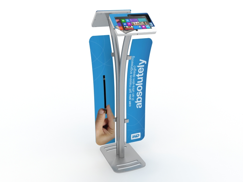 Early on, we predicted that the Microsoft Surface Tablets would have “legs” (Yes, that’s supposed to be a pun). We designed a secure enclosure for the Surface and modified them with each release, including the Surface Pro 3. The enclosures fit most of the iPad stands and come with the patented Swivel Stop feature (portrait to landscape). There are currently over 30 Solutions in Exhibit Design Search.